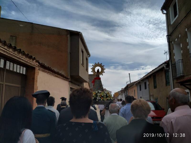 Se realiza la procesión con la imagen de la patrona por todo el pueblo.